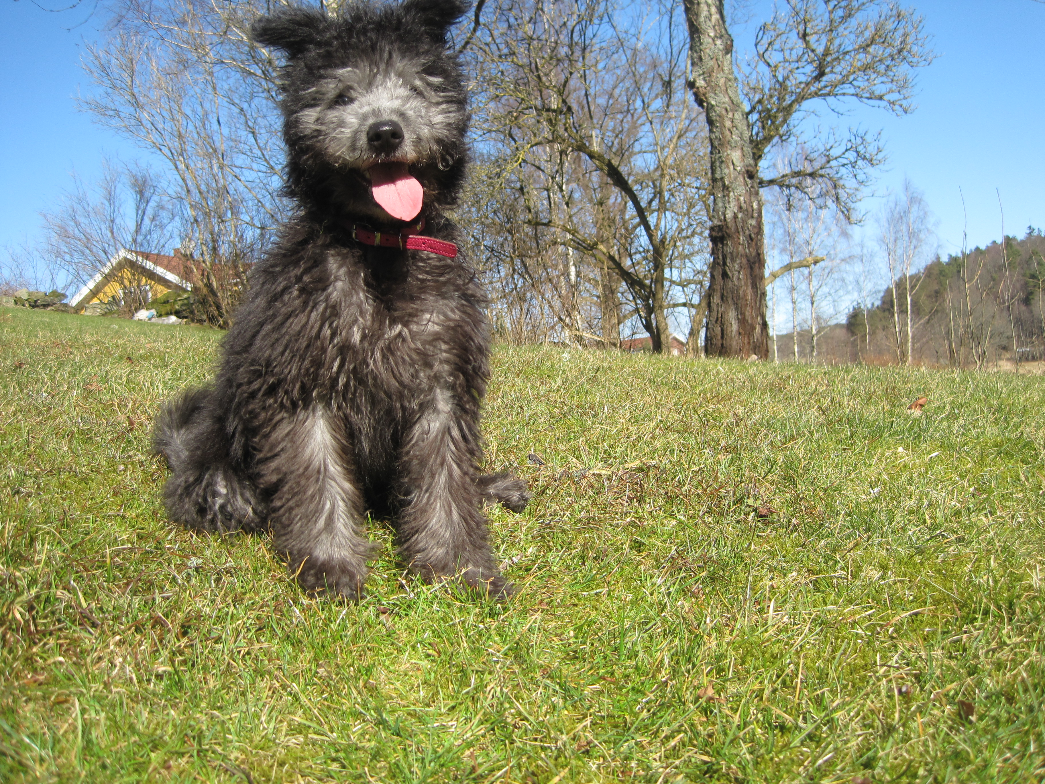 Här uppe i stugan kan hundarna springa hur de vill, inga farliga vägar mitt i skogen inte. 😛 Idag har jag , Preben och Pappa åkt skidor. Det var riktigt roligt men vad ont i fötterna man får de första dagarna. Just nu är det krampkänningar i vaderna. Och pappa har hittat muskler han inte trodde fanns, tihi. 😀 Hundarna har varit med mamma nedanför skidbacken och solat sig. Tea var så duktig med alla barn, skidor,stavar och hundar. En snäll dam kom fram till Tea och frågade om det var en Puli… men nej det var det ju inte hihi men NÄSTAN.. 😀
