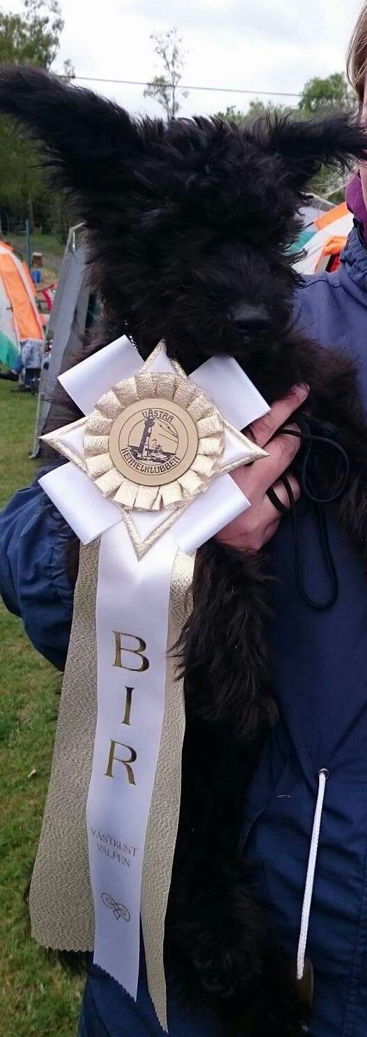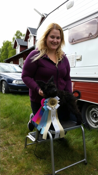 Idag söndag var det dags för utställning. Den var i Backamo och det var Jillas utställningsdebut. Hon gick superfint och fick kanonkritik. Hon blev därför BIR med HP. Och i BIS finalen blev hon oplacerad men bland de 8 bästa av ca 40 valpar. Supervalpen!