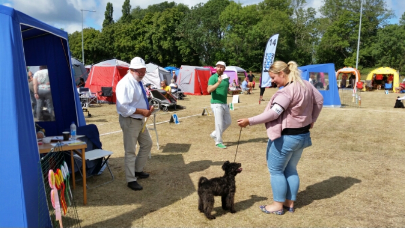 Vi ställde även ut i Ronneby. Där var det tre valpar anmälda. Lite ovanligt så det var jättekul. Jilla slog först ut tiken och sedan hanen och blev även där BIR valp med HP.