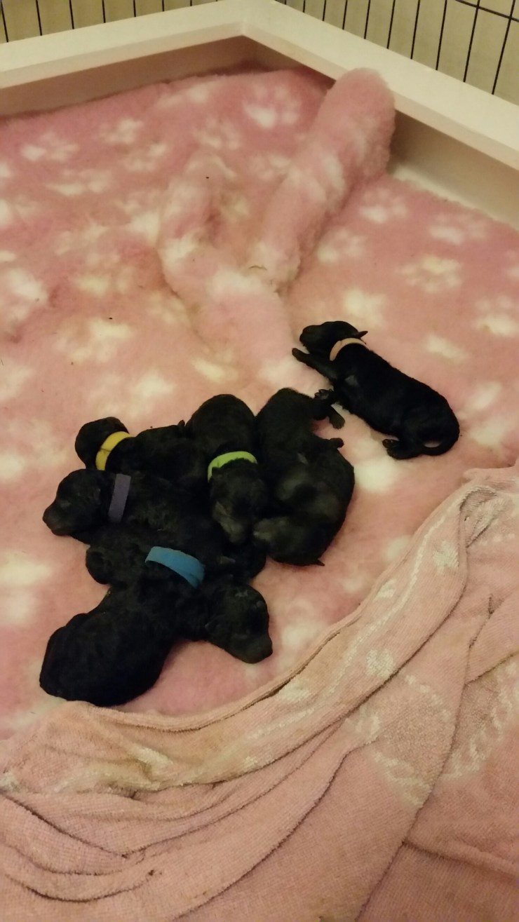 I lördags kväll den 10 juni började Isis att valpa. Isis var så duktig. Det gick enkelt och var 10-20 minuter mellan varje valp. Det kändes som om Isis aldrig skulle bli färdig det bara kom valp efter valp efter valp. Totalt kom det ut 8 små mirakel.