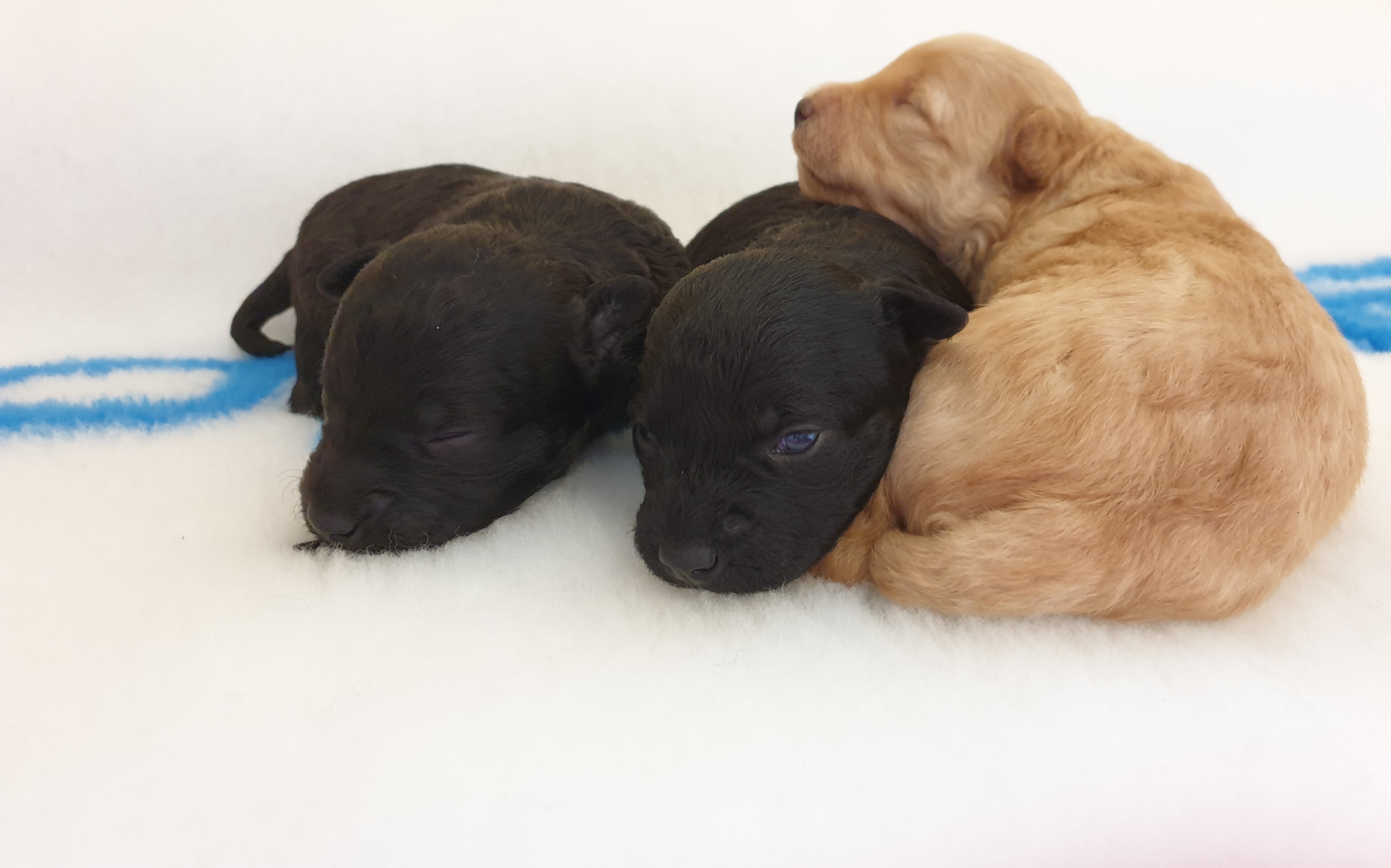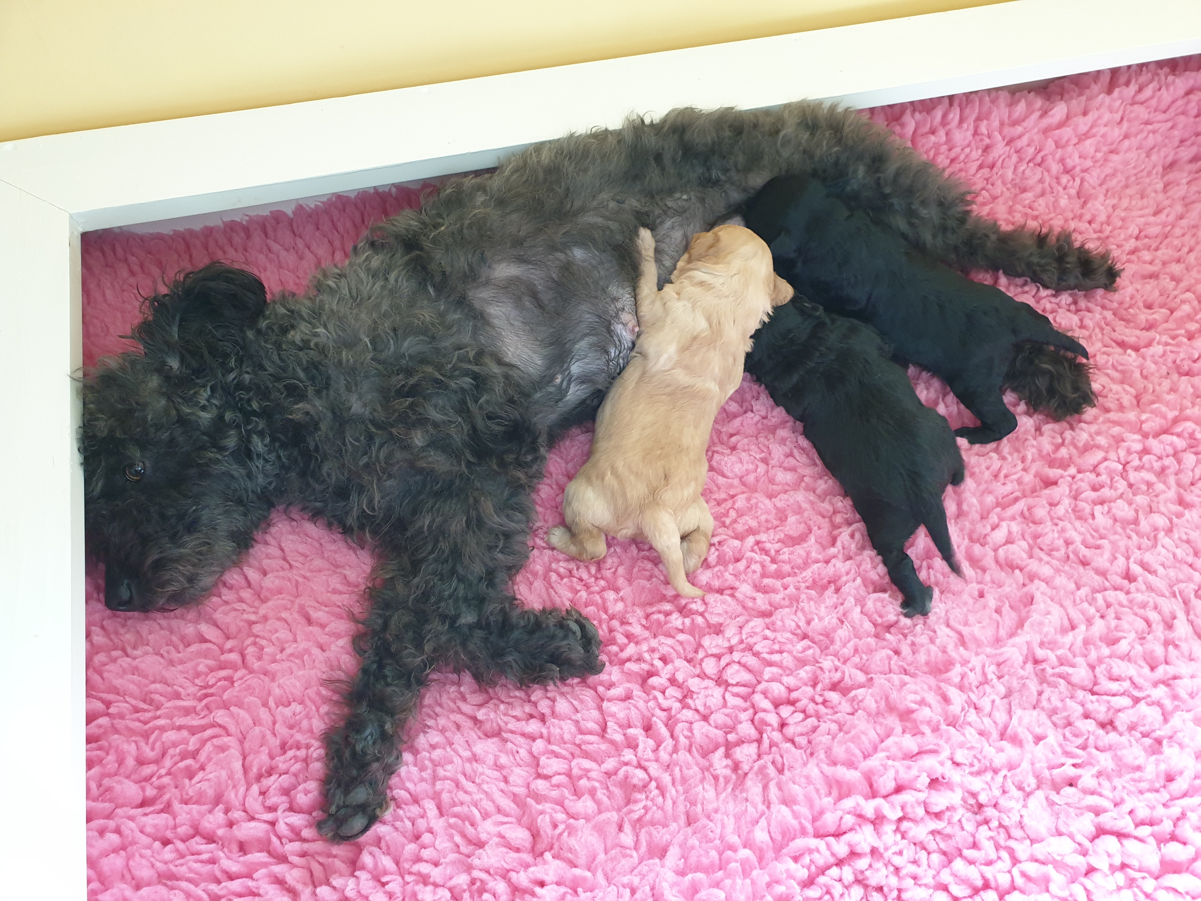 Nu är våra pumivalpar 2 veckor. Mamma Jilla och valparna mår jättebra. Ögonen har nu börjat öppnas, tiken var först och de andra är på gång. De har fått klorna klippta ett par gånger. Just nu när de är små händer det inte mycket. Det är ett lugn över Jilla och valparna. Men de rör sig ändå väldigt mycket, att ta kort på dem är inte det enklaste.