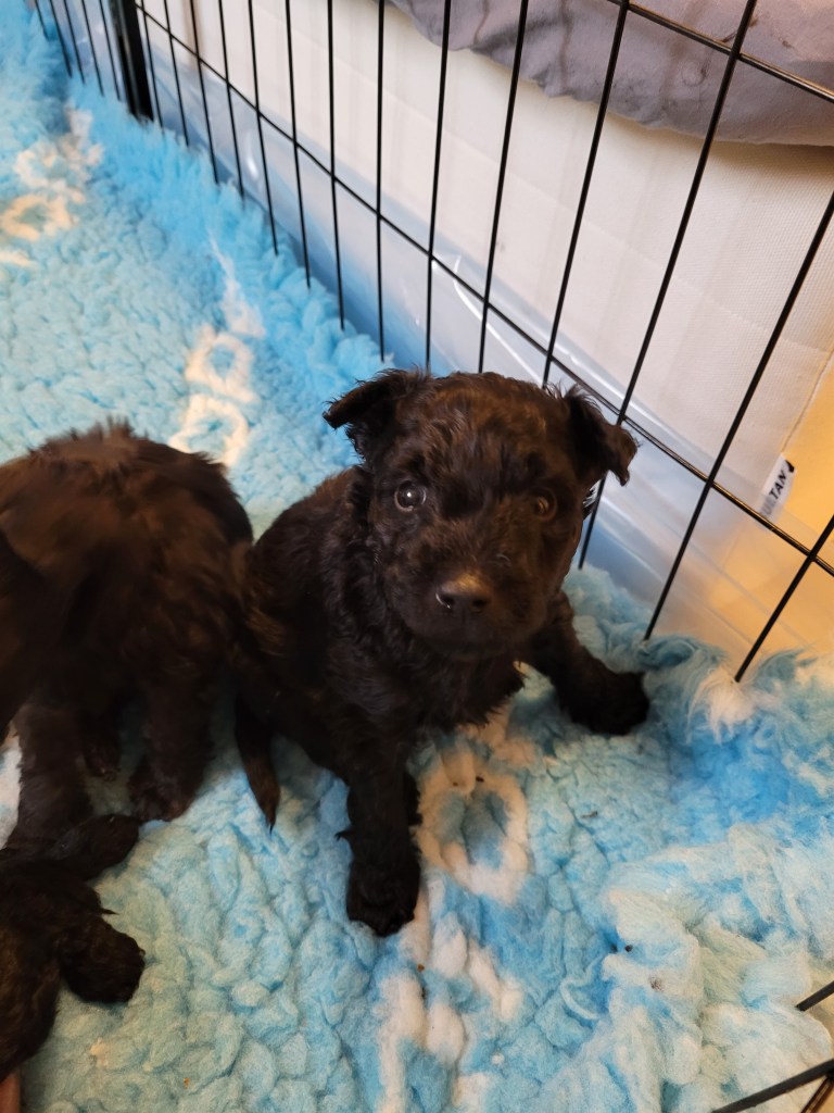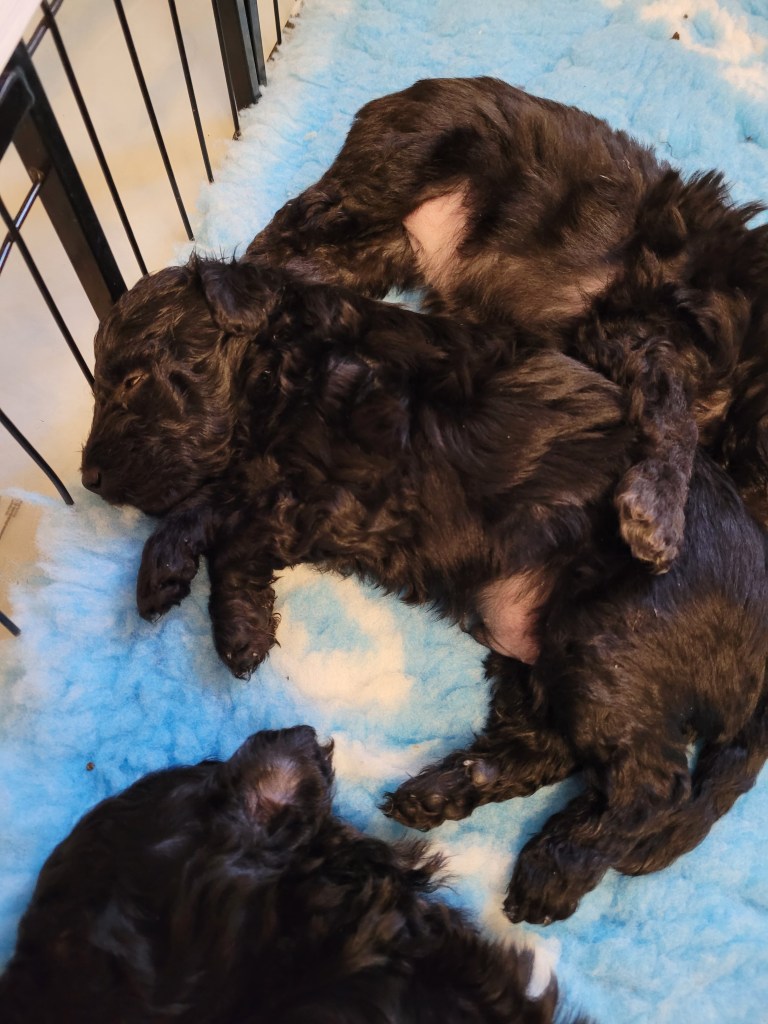 Fem veckor och jag tror att jag skriver varje vecka att tiden går så fort. Valparna har fått klorna klippta och vi har avmaskat dem igen. Vi brukar göra det minst tre gånger under de veckorna som vi har dem.