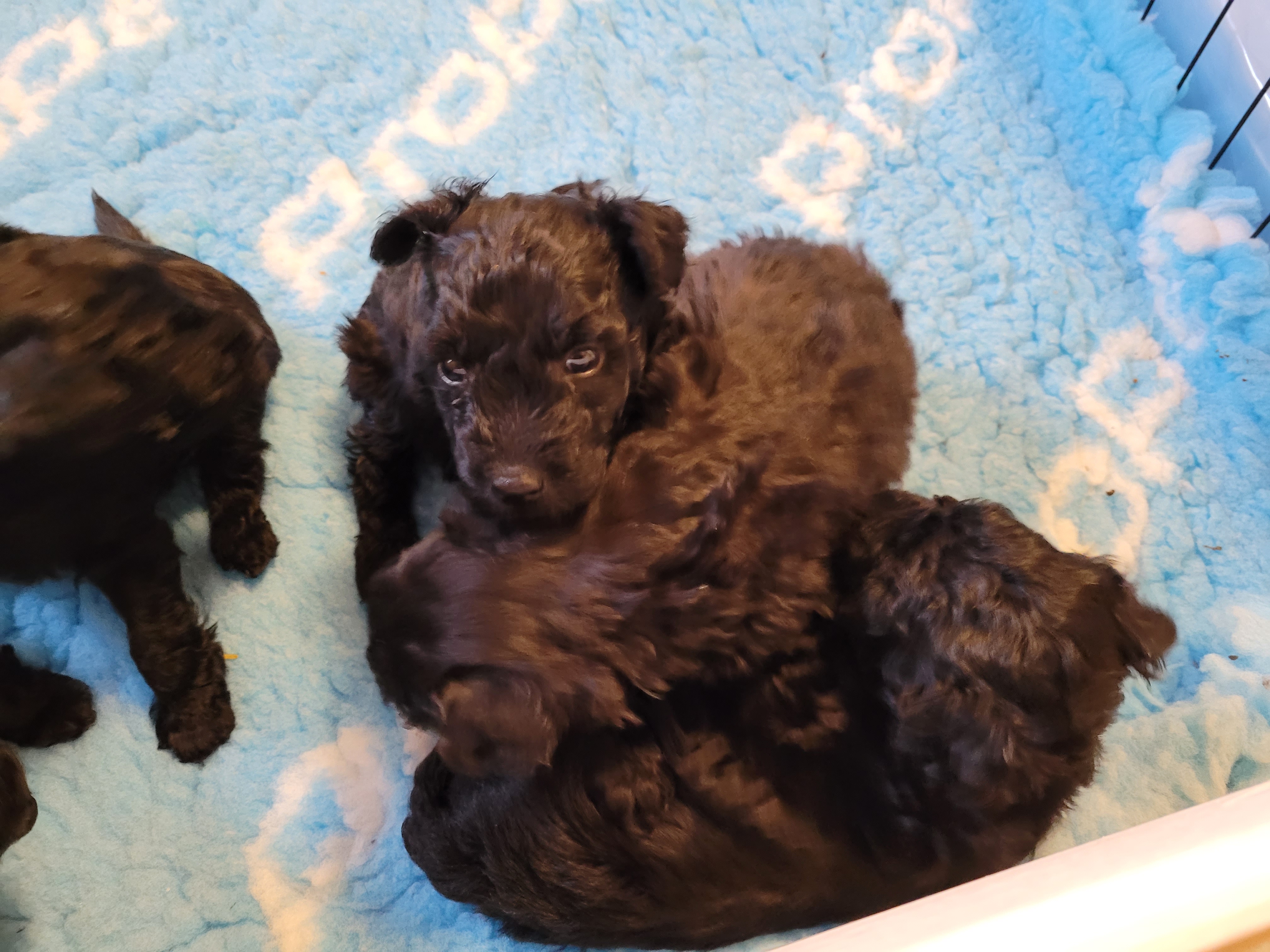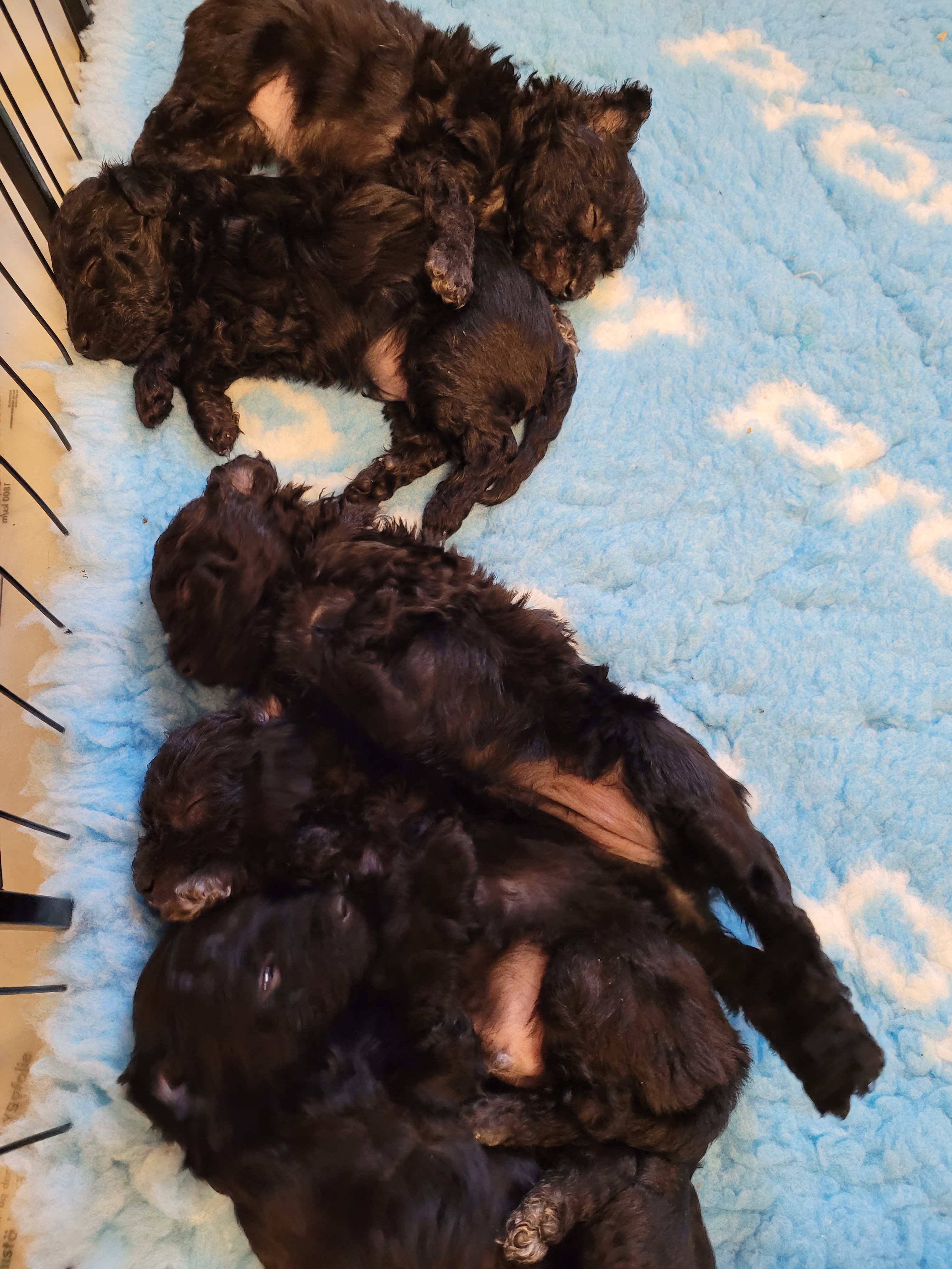 Fem veckor och jag tror att jag skriver varje vecka att tiden går så fort. Valparna har fått klorna klippta och vi har avmaskat dem igen. Vi brukar göra det minst tre gånger under de veckorna som vi har dem.