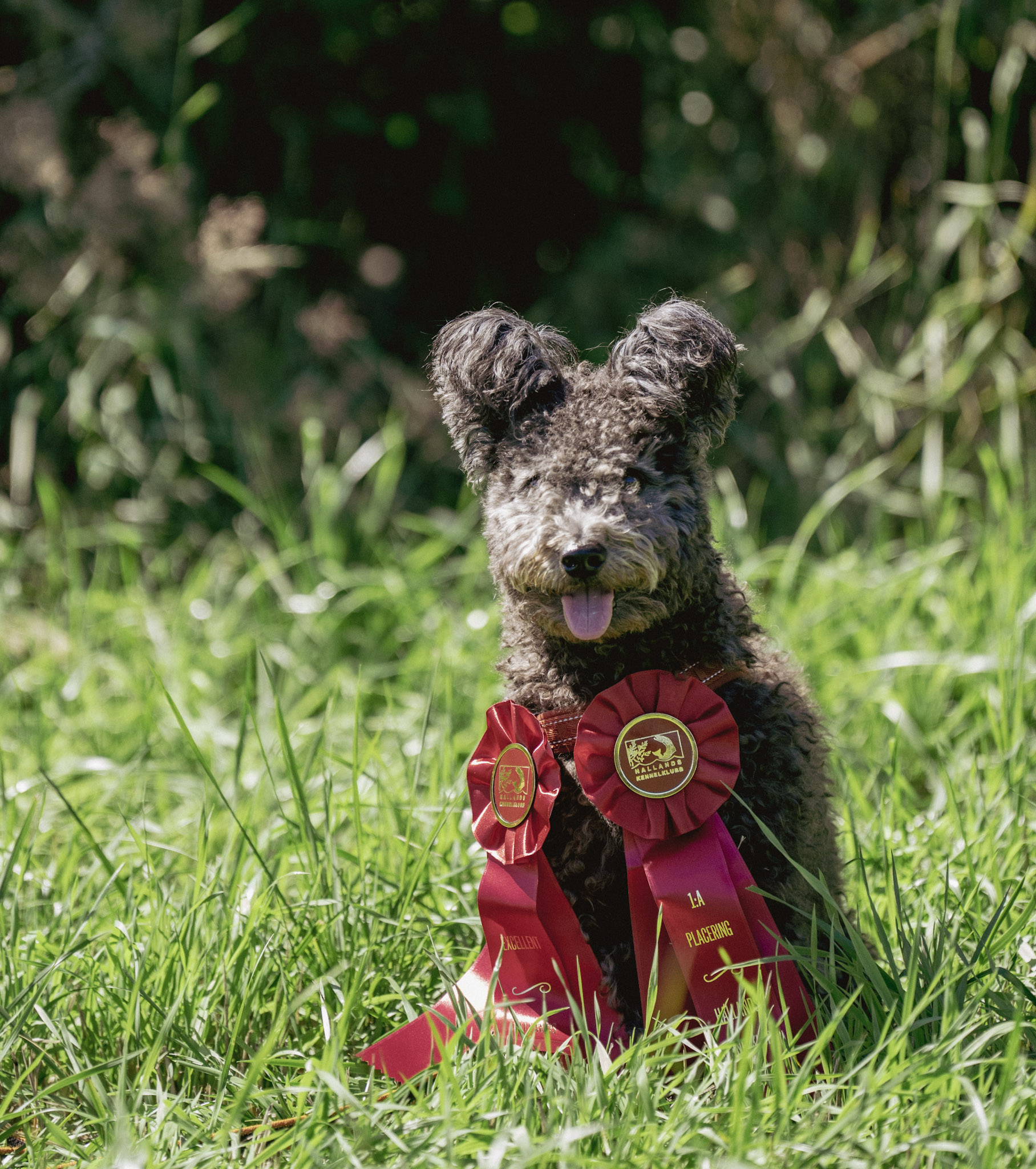 Billie är en pumitik med stor arbetslust och med stor entusiasm hänger på allt som familjen hittar på. Godis och framförallt kamplek är hennes bästa belöning i såväl vardagsträning som på kurs. Människor är det trevligaste hon vet, fick hon själv välja skulle hon gärna få klappar och kärlek av hela världen! Hon har sedan valp varit avvaktande mot andra hundar och väljer noga ut sina bästisar att leka med.